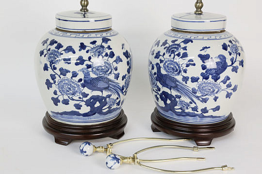 Pair of Canton Style Ginger Jar Lamps