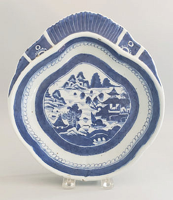 19th Century Chinese Canton Blue and White Shaped Open Vegetable Dish, circa 1860