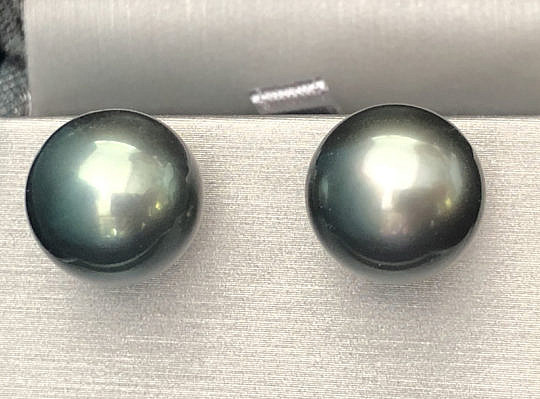 Pair of 13.2mm South Sea Tahitian Grey Pearl Earrings