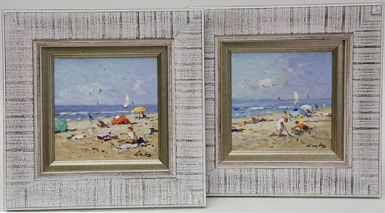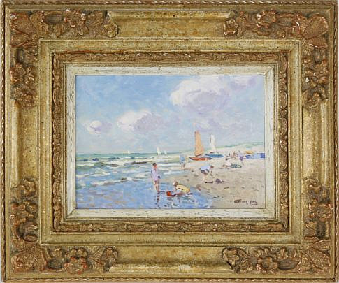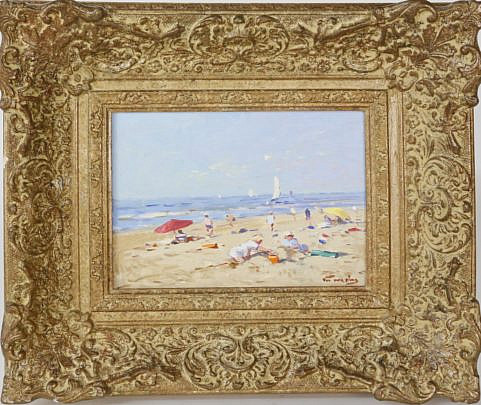 Nicolaas (Niek) Van der Plas Oil on Board “Beach Scene“