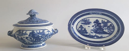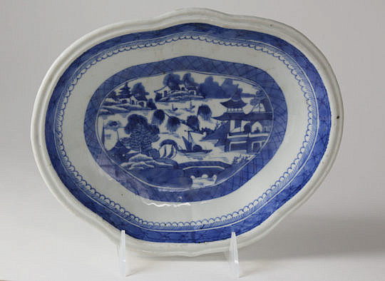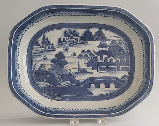 19th Century Canton Blue and White Rectangular Platter