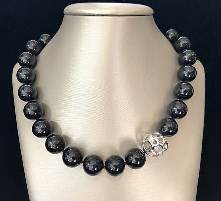Tiffany & Co. 18k White Gold and 14.5mm Black Onyx Bead Necklace