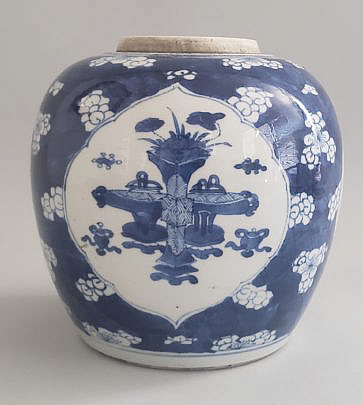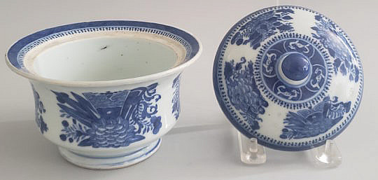 19th Century Fitzhugh Blue and White Covered Sugar Bowl