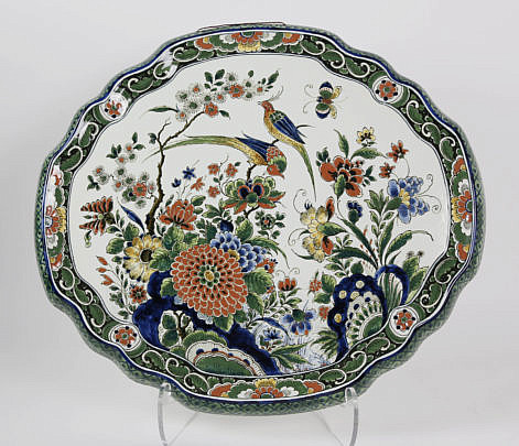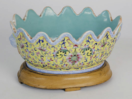 Chinese Famille Rose Fluted Rim Oval Bowl, 19th Century
