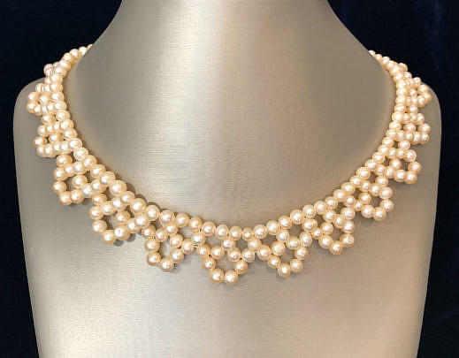 Woven White Seed Pearl Choker Necklace