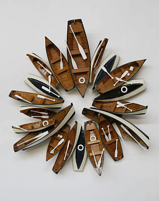 Maralyn Menghini Contemporary Carved Wood Dory and Dinghy Wreath