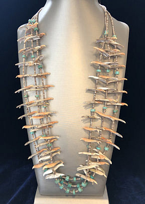 Vintage Native American 3-strand Heishi and Carved Bird Fetish Necklace