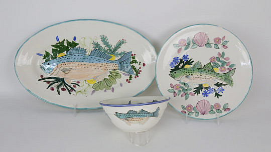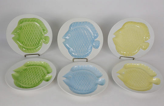 Set of Six Italian Ceramic Fish Embossed Plates