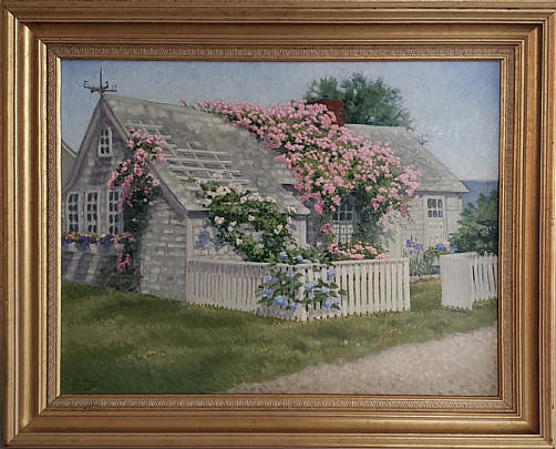 Victoria Cromartie Harvey Oil on Canvas, “Sconset Cottage”, Nantucket