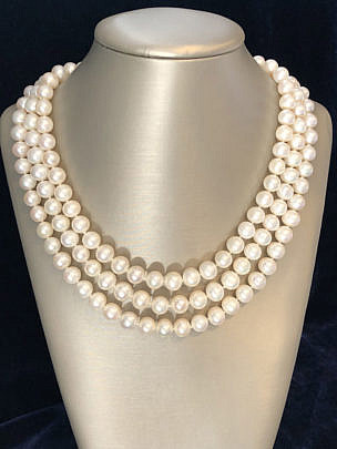 White Fresh Water Pearl Triple Strand Necklace