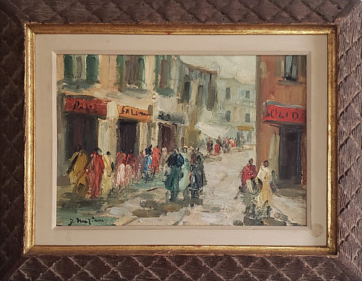 Antique Oil on Panel “Porta Nolana Napoli Street Scene”