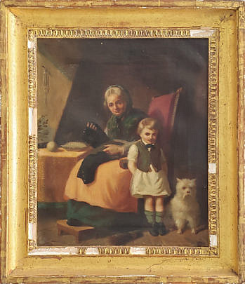 19th Century Oil on Canvas Dutch Interior Scene “Mending the Pants”