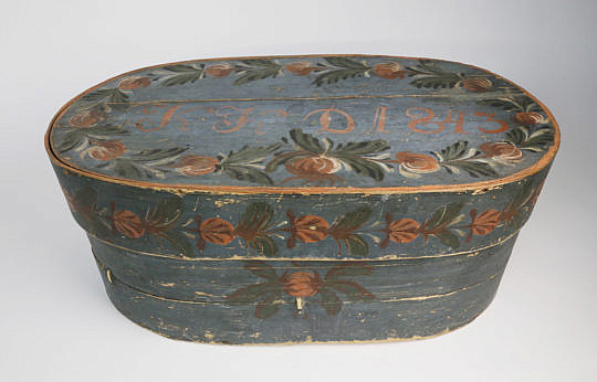 Scandinavian Decorated Oval Band Box, circa 1843