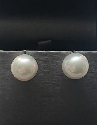 Fine Pair of 12.2mm White South Sea Pearls Earrings, 14k Gold