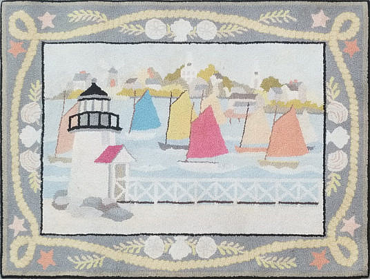 Claire Murray Hooked Rug “Rainbow Fleet at Brant Point Nantucket”