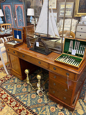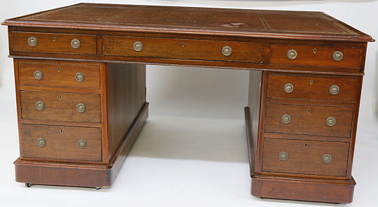 English Regency Mahogany Leather Top Partner’s Desk, 19th Century