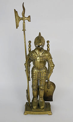 Brass Knight in Suit of Armor Fireplace Tool Set