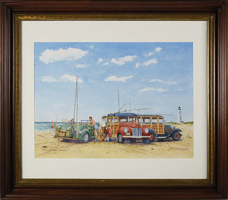 John Hutchinson Watercolor on Paper, “The Good Old Days, Surfcasting at Great Point”