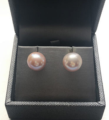Pair of 11.5mm Pink Fresh Water Pearl Earrings, 14k Gold