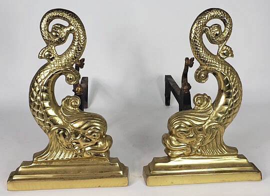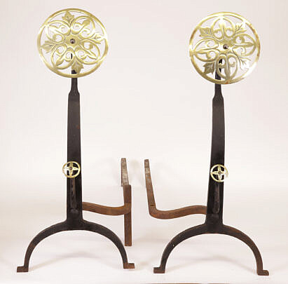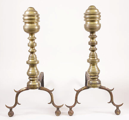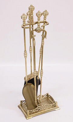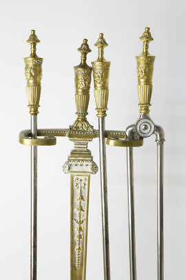19th Century Federal 4-Piece Brass and Steel Firetool Set