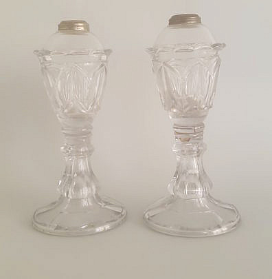 Pair of American Flint Glass Whale Oil Lamps, 19th Century