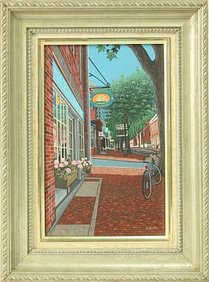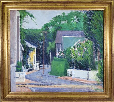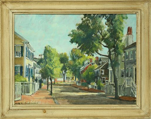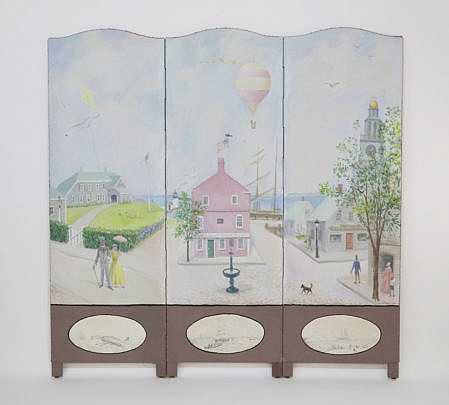 Gerald Tabor Oil on Canvas Room Divider Depicting Nantucket’s Lower Main Street