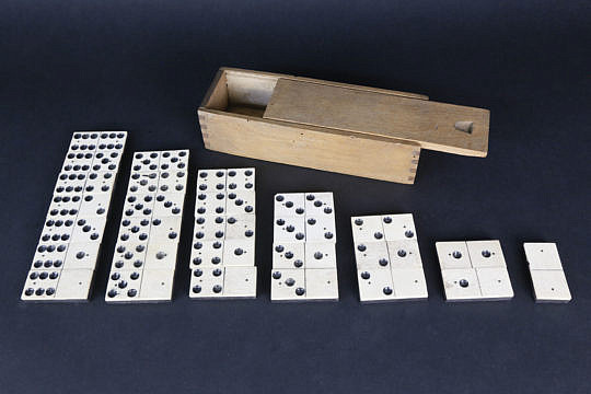 Boxed Set of Bone and Ebony Dominoes, 19th Century
