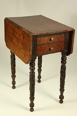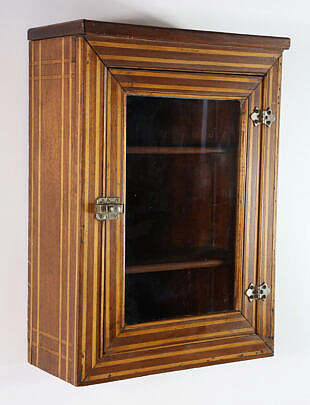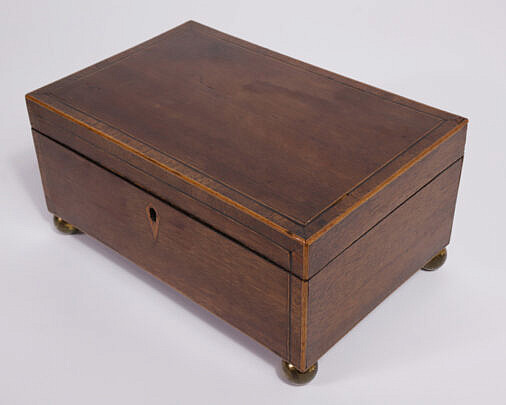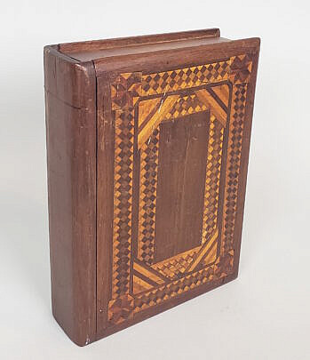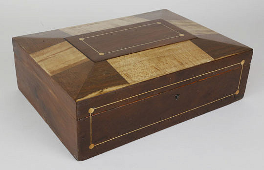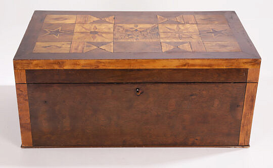 Antique New England Folk Art Multi-wood Inlaid Jewelry Box, 19th Century