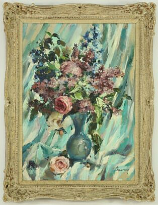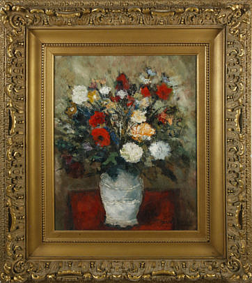Jean Kausch Oil on Board “Flower Filled Vase Still Life”