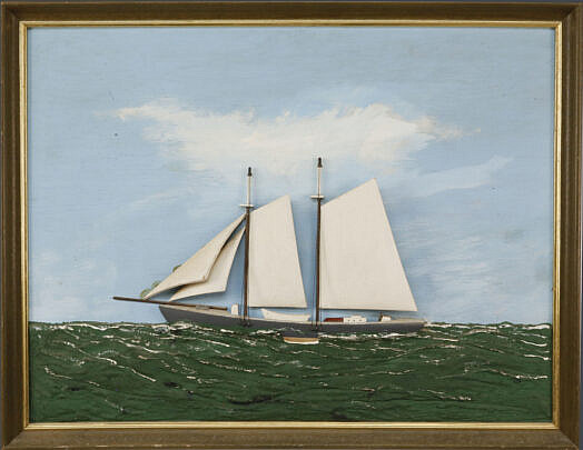 Vintage Framed Dimensional Plaque of a Two Masted Sloop