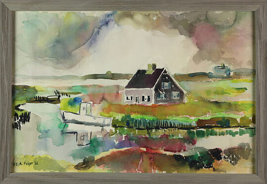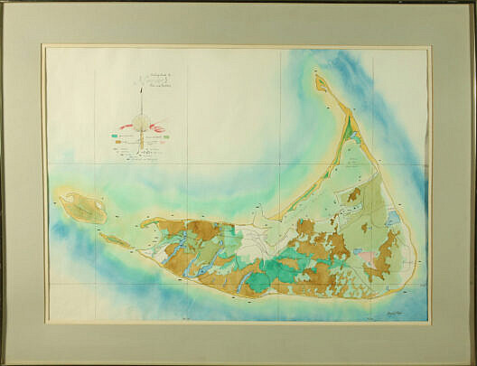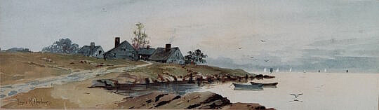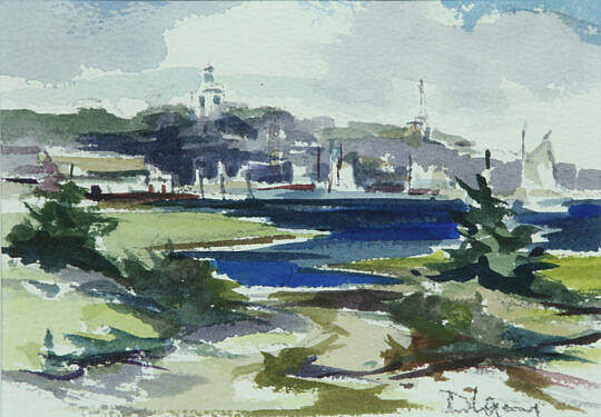 David Lazarus Watercolor on Paper “View of Nantucket Town from the Creeks”