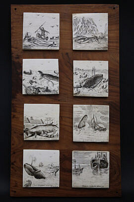 Collection of 8 Scrimshaw Bone Whaling Scene Plaques
