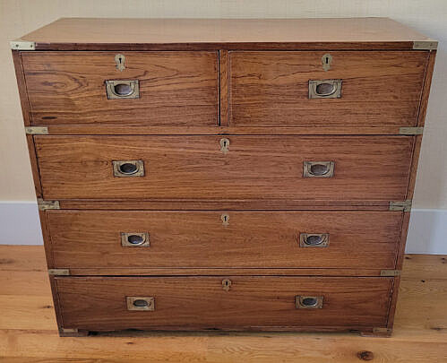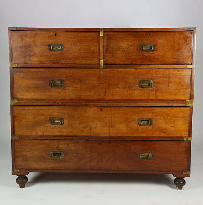 Two-Part British Regency Brass Bound Campaign Chest of Drawers, 19th Century