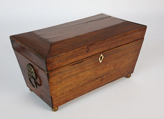 Mahogany Double Compartment Tea Caddy with Paneled Top, 19th Century