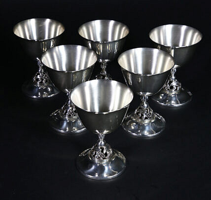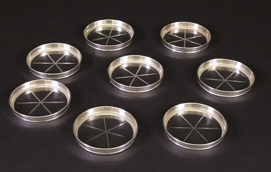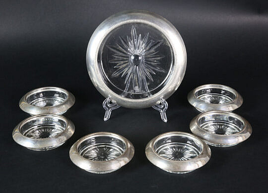 Set of Six Sterling Silver and Crystal Coasters with One Additional Coaster