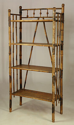 Antique Bamboo and Pine Bookshelf, 19th Century