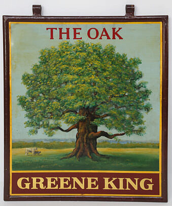 Antique English Metal Pub Sign “The Oak – Greene King”