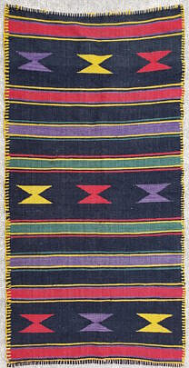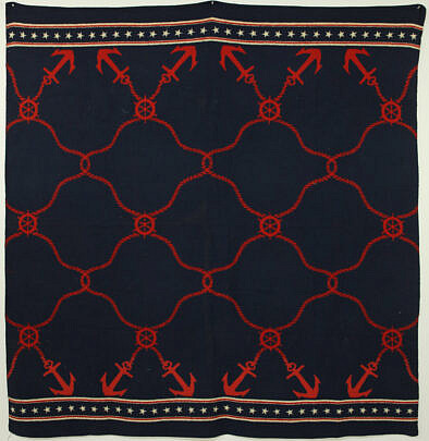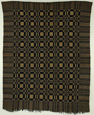 Antique Ecru and Navy Blue Jacquard Reversible Coverlet, 19th Century