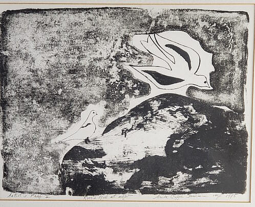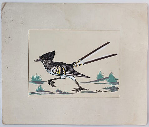 Vintage Archie Black Owl Gouache on Paper, ”Road Runner”