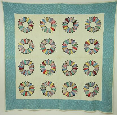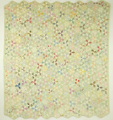 Geometric Patchwork Quilt in a Variety of Different Dress Fabrics, circa 1930s