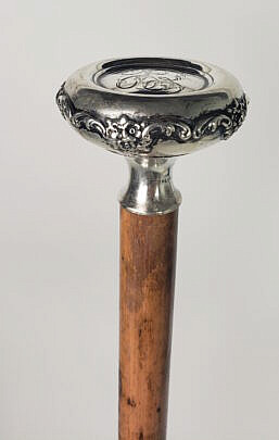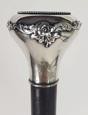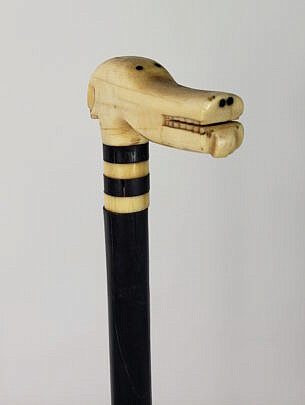 Silver Mounted Antique Whale Tooth Handled Cane, 19th Century