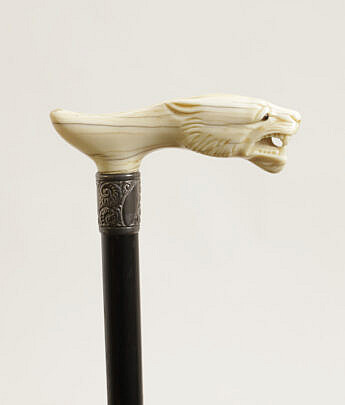 Antique Carved Lynx Head Handled Cane, 19th Century