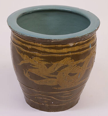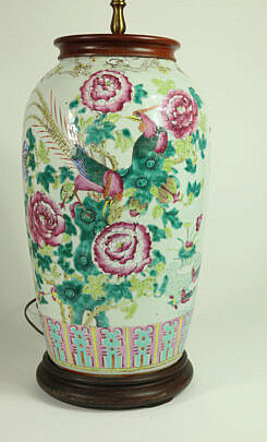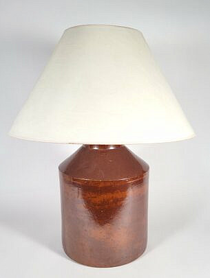 Large Antique 19th Century Redware Pottery Storage Jar Lamp