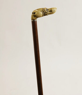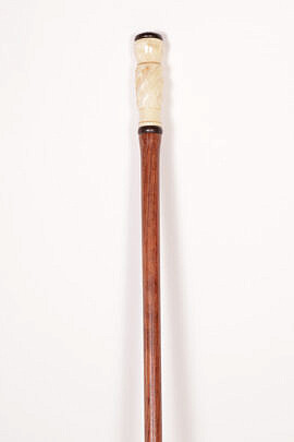 Antique Carved Bone and Exotic Hardwood Swagger Stick