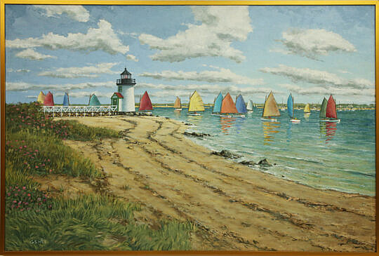 Jerome Howes Acrylic on Artist’s Board “Nantucket’s Rainbow Fleet”