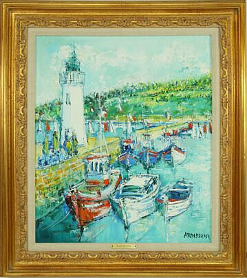 Frank Corso Oil on Board “Tranquil Harbor View”