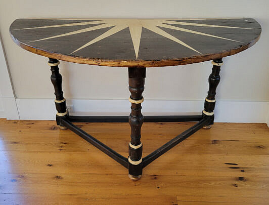 French Fruitwood Server With Black Fossil Slate Top , 19th Century