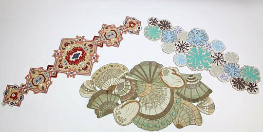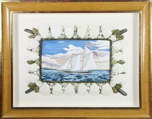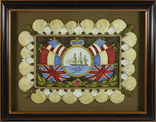 Mellie Cooper Acrylic on Hand Made Paper “Allied Flags Surrounding a Clipper Ship Cartouche”
