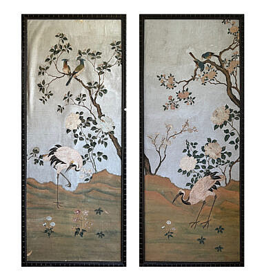 Pair of Vintage Reverse Paintings on Glass Ship Portrait’s