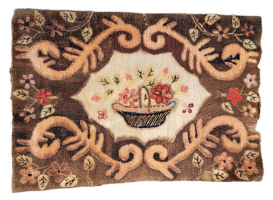 Vintage Claire Murray Nantucket Floral Basket Hooked Rug Runner